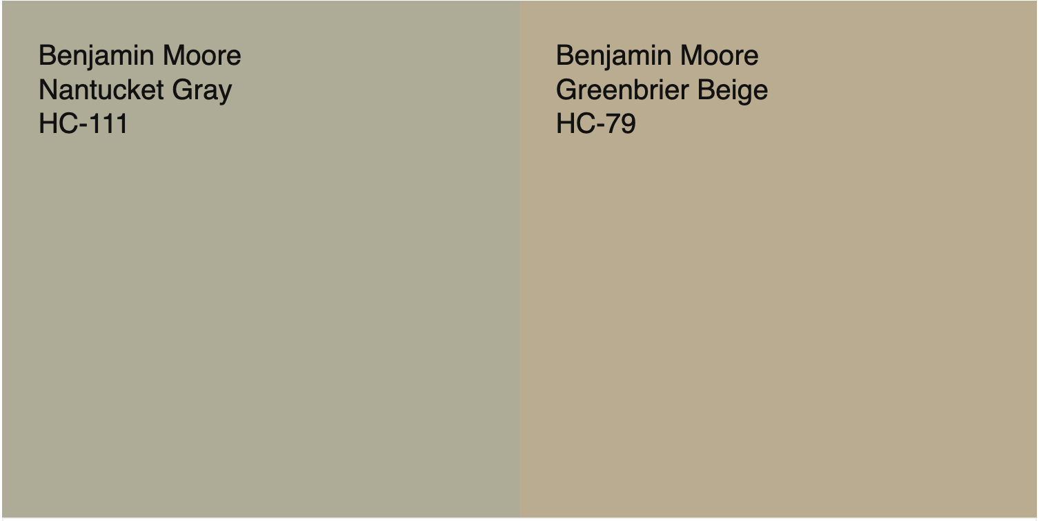 The last way we will come to fully understand the undertones of this enigmatic paint color is to compare it to a low-chroma tan like Greenbrier Beige.